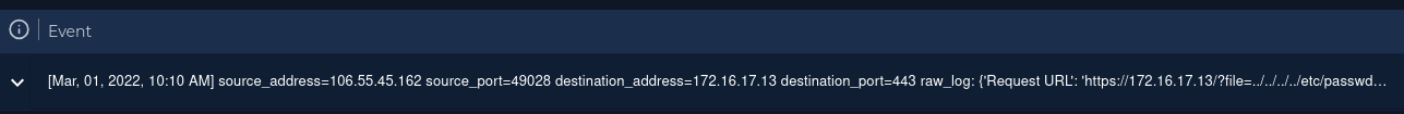 Expanding the event, shows the log entry: